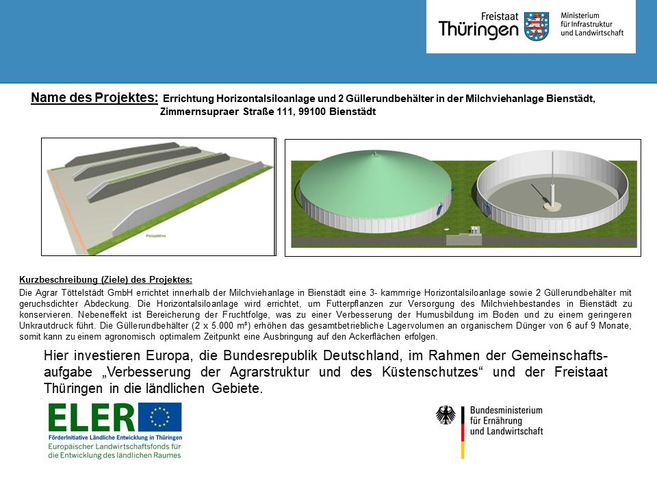 Die Agrar Töttelstädt GmbH bewirtschaftet 1.775 ha Landwirtschaftliche Nutzfläche. Hauptanbaufrüchte sind 1.200 ha Getreide, 300 ha Raps, 50 ha Futtererbsen, 50 ha Zuckerrüben sowie 120 ha Silomais für unsere Biogasanlage.